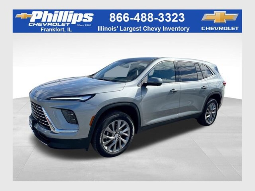 CarBravo Certified, AWD, Backup Camera, Remote Start, 7 Passenger Seating, Pwr Dr Seat, Forward Collision Alert, Navigation, Bose Audio, Side Blind Zone Alert, Rear Cross Traffic Alert, Lane Departure Warning, Lane Change Alert, Lane Keep Assist, Rear Park Assist, Adaptive Cruise Control, Heated Seats, Heated Steering Wheel, Power Liftgate, Apple CarPlay, 20 Wheels, Carfax Buyback Guarantee, Enclave Preferred, 4D Sport Utility, 2.5L DOHC, 8-Speed Automatic, AWD, Moonstone Gray Metallic, Ebony w/Sky Cool Gray & Ebony Accents w/Leatherette Seat Trim, 3rd row seats: split-bench, 4-Wheel Disc Brakes, ABS brakes, Air Conditioning, AM/FM radio: SiriusXM with 360L, Auto High-beam Headlights, Auto-dimming door mirrors, Auto-dimming Rear-View mirror, Automatic temperature control, Bose Premium 12-Speaker Audio System, Brake assist, Bumpers: body-color, Compass, Deleted OnStar Basics, Driver 4-Way Power Lumbar Seat Adjuster, Driver 8-Way Power Seat Adjuster, Driver door bin, Driver vanity mirror, Dual front impact airbags, Dual front side impact airbags, Electronic Stability Control, Emergency communication system: OnStar and Buick connected services capable, Four wheel independent suspension, Front anti-roll bar, Front Bucket Seats, Front Center Armrest, Front dual zone A/C, Front Passenger 4-Way Power Lumbar Seat Adjuster, Front Passenger 6-Way Power Seat Adjuster, Front reading lights, Fully automatic headlights, Heated door mirrors, Heated Driver and Front Passenger Seats, Heated steering wheel, Illuminated entry, Leather steering wheel, Leatherette Seat Trim, Low tire pressure warning, Navigation System, Occupant sensing airbag, Outside temperature display, Overhead airbag, Overhead console, Passenger door bin, Passenger vanity mirror, Power door mirrors, Power driver seat, Power Liftgate, Power passenger seat, Power steering, Power windows, Preferred Equipment Group 1SD, Premium audio system: Buick Infotainment System, Radio data system, Radio: Infotainment Center, Rear air conditioning, Rear anti-roll bar, Rear reading lights, Rear side impact airbag, Rear window defroster, Rear window wiper, Remote keyless entry, Security system, SiriusXM with 360L Trial Subscription, Speed control, Speed-sensing steering, Spoiler, Steering wheel mounted audio controls, Tachometer, Telescoping steering wheel, Tilt steering wheel, Traction control, Trip computer, Turn signal indicator mirrors, Variably intermittent wipers, Voltmeter, Wheels: 20 Alloy with Medium Android Finish, Wireless Apple CarPlay, Wireless Google Android Auto. 2025 Buick Enclave Moonstone Gray Metallic Preferred 4D Sport Utility AWD 8-Speed Automatic 19/24 City/Highway MPG 2.5L DOHCCertification Program Details: Type your description hereWith the internet today, a great value shouldnât be hard to find. Here at Phillips Chevrolet we do the research for you. We monitor the market daily to ensure our customers are getting the best value achievable. We price all of our vehicles to make the buying process as simple and easy as possible. Our internet prices are just one factor that makes us the #1, #2, and out to be the #3 Chevrolet dealerships in Illinois. The #2 Chevy dealership in Illinois is conveniently located just a one block south of 80/94, at 17730 S Torrence Avenue in Lansing, IL 60438.