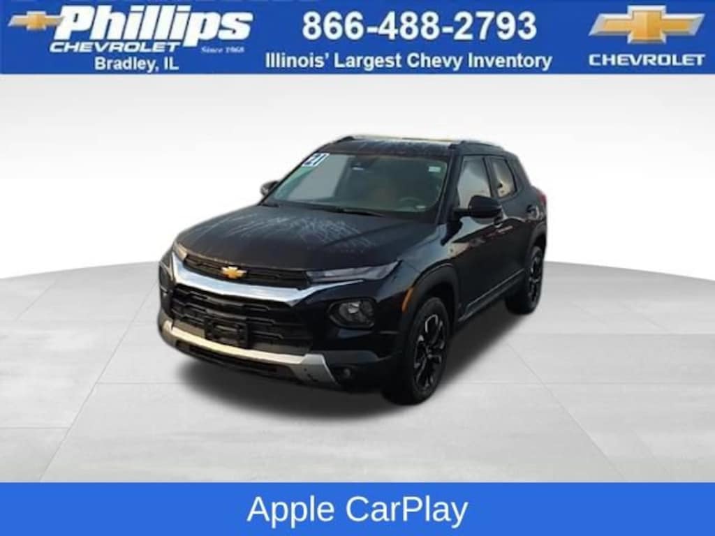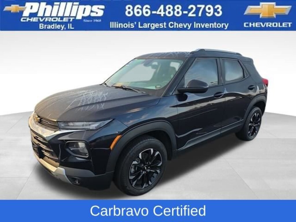 Carbravo Certified, One Owner, Apple CarPlay, Android Auto, Keyless Entry, Auto Check - Accident free, AWD, Back Up Camera, Bluetooth, Forward Collision Alert, Intellibeam, Lane Assist, Pedestrian Monitoring, Power Locks, Power Seating, Power Windows, Push Button Start, Remaining factory warranty, Remote start, Lane Change Alert, Carfax Buyback Guarantee, TrailBlazer LT, 4D Sport Utility, 1.3L Ecotec Turbo DOHC SIDI w/VVT, 9-Speed Automatic, AWD, Midnight Blue Metallic, Black Cloth, 2-Way Power Driver Lumbar Seat Adjuster, 3.17 Axle Ratio, 4-Way Manual Front Passenger Seat Adjuster, 4-Wheel Disc Brakes, 6-Speaker Audio System Feature w/Amplifier, 8-Way Power Driver Seat Adjuster, ABS brakes, Apple CarPlay/Android Auto, Auto High-beam Headlights, Brake assist, Bumpers: body-color, Cloth Seat Trim, Compass, Delay-off headlights, Driver door bin, Driver vanity mirror, Dual front impact airbags, Dual front side impact airbags, Electronic Stability Control, Emergency communication system: OnStar and Chevrolet connected services capable, Exterior Parking Camera Rear, Flat-Folding Front Passenger Seatback, Front anti-roll bar, Front Bucket Seats, Front Center Armrest, Front fog lights, Front reading lights, Front wheel independent suspension, Fully automatic headlights, Heated door mirrors, Heated Driver & Front Passenger Seats, Illuminated entry, Knee airbag, Low tire pressure warning, Occupant sensing airbag, Overhead airbag, Overhead console, Panic alarm, Passenger door bin, Passenger vanity mirror, Power door mirrors, Power windows, Preferred Equipment Group 1LT, Radio: Chevrolet Infotainment 3 System, Rear side impact airbag, Rear window defroster, Rear window wiper, Remote keyless entry, Ride & Handling Suspension, Roof rack: rails only, Security system, Speed control, Split folding rear seat, Spoiler, Steering wheel mounted audio controls, Tachometer, Telescoping steering wheel, Tilt steering wheel, Traction control, Trip computer, Variably intermittent wipers, Wheels: 17 High Gloss Black Machined Aluminum, Wireless Apple CarPlay/Android Auto. CARFAX One-Owner. Clean CARFAX. Certified. Midnight Blue Metallic 2021 Chevrolet TrailBlazer LT AWD 9-Speed Automatic 1.3L Ecotec Turbo DOHC SIDI w/VVT26/30 City/Highway MPGCertification Program Details: Type your description here Awards:* 2021 IIHS Top Safety Pick+ * Ward's 10 Best Engines and Propulsion SystemsWith the internet today, a great value shouldn't be hard to find. Here at Phillips Chevrolet we do the research for you. We monitor the market daily to ensure our customers are getting the best value achievable. We price all of our vehicles to make the buying process as simple and easy as possible. Our internet prices are just one factor that makes us the #1, #2, and out to be the #3 Chevrolet dealerships in Illinois. The future #3 Chevy dealership in Illinois is conveniently located at 1400 Locke Drive, the corner of I-57 & IL 50, in Bradley/Bourbonnais, IL 60914.