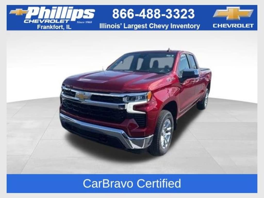 CarBravo Certified, 4WD, Low Miles, Trailering Package, Backup Camera, Remote Start, Pwr Dr Seat, Heated Seats, Heated Steering Wheel, Aluminum Wheels, Carfax Buyback Guarantee, Silverado 1500 LT LT1, 4D Extended Cab, 2.7L Turbo, 8-Speed Automatic, 4WD, Cherry Red Tintcoat, Jet Black w/Cloth Seat Trim, 10-Way Power Driver Seat w/Lumbar, 12.3 Multicolor Reconfigurable Digital Display, 3.42 Rear Axle Ratio, 4-Wheel Disc Brakes, 40/20/40 Front Split-Bench Seat, 6 Speakers, ABS brakes, All-Star Edition, AM/FM radio: SiriusXM with 360L, Apple CarPlay/Android Auto, Auto High-beam Headlights, Auto-Locking Rear Differential, Automatic Emergency Braking, Automatic temperature control, Bluetooth® For Phone, Brake assist, Bumpers: chrome, Chevrolet Connected Access Capable, Chrome Mirror Caps, Cloth Seat Trim, Color-Keyed Carpeting Floor Covering, Compass, Convenience Package, Deep-Tinted Glass, Driver door bin, Driver vanity mirror, Dual front impact airbags, Dual front side impact airbags, Dual-Zone Automatic Climate Control, Electric Rear-Window Defogger, Electrical Steering Column Lock, Electronic Cruise Control, Electronic Stability Control, EZ Lift Power Lock & Release Tailgate, Following Distance Indicator, Forward Collision Alert, Front Center Armrest w/Storage, Front dual zone A/C, Front Frame-Mounted Black Recovery Hooks, Front Pedestrian Braking, Front reading lights, Front Rubberized Vinyl Floor Mats, Fully automatic headlights, HD Rear Vision Camera, Heated Driver & Front Outboard Passenger Seats, Heated Power-Adjustable Outside Mirrors, Heated Steering Wheel, Inside Rear-View Mirror w/Tilt, Lane Keep Assist w/Lane Departure Warning, Leather Wrapped Steering Wheel, LED Cargo Area Lighting, Manual Tilt/Telescoping Steering Column, Not Equipped w/Steering Column Lock, OnStar & Chevrolet Connected Services Capable, Outside temperature display, Overhead console, Passenger door bin, Passenger vanity mirror, Power door mirrors, Power driver seat, Power Front Windows w/Driver Express Up/Down, Power Front Windows w/Passenger Express Down, Power Rear Windows w/Express Down, Preferred Equipment Group 1LT, Radio data system, Radio: Chevrolet Infotainment 3 Premium System, Rear 60/40 Folding Bench Seat (Folds Up), Rear reading lights, Rear Rubberized-Vinyl Floor Mats, Rear step bumper, Remote Vehicle Starter System, Security system, SiriusXM w/360L, Speed-sensing steering, Standard Suspension Package, Standard Tailgate, Steering Wheel Audio Controls, Steering wheel mounted audio controls, Tachometer, Telescoping steering wheel, Theft Deterrent System (Unauthorized Entry), Tilt steering wheel, Traction control, Trailering Package, Trip computer, Variably intermittent wipers, Voltmeter, Wheels: 18 x 8.5 Bright Silver Painted Aluminum, Wi-Fi Hot Spot Capable, Wireless Phone Projection. 2022 Chevrolet Silverado 1500 Cherry Red Tintcoat LT 4D Extended Cab LT1 4WD 8-Speed Automatic 17/20 City/Highway MPG 2.7L TurboRecent Arrival!Certification Program Details: Type your description hereWith the internet today, a great value shouldnât be hard to find. Here at Phillips Chevrolet we do the research for you. We monitor the market daily to ensure our customers are getting the best value achievable. We price all of our vehicles to make the buying process as simple and easy as possible. Our internet prices are just one factor that makes us the #1, #2, and out to be the #3 Chevrolet dealerships in Illinois. The #2 Chevy dealership in Illinois is conveniently located just a one block south of 80/94, at 17730 S Torrence Avenue in Lansing, IL 60438.