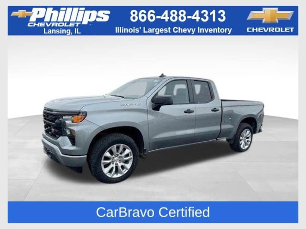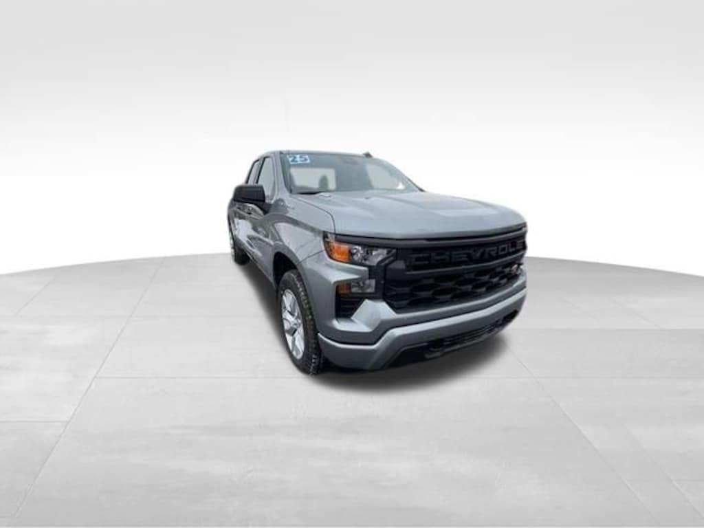 CarBravo Certified, No Added Cert. Fees, 4WD!, Apple CarPlay, Keyless Entry, Backup Camera, BLUETOOTH, Power Windows/Locks, PUSH BUTTON START!, Trailering Package, Carfax Buyback Guarantee, Silverado 1500 Custom, 4D Extended Cab, 2.7L I4 Turbocharged DOHC 16V LEV3-SULEV30 310hp, 8-Speed Automatic, 4WD, Sterling Gray Metallic, Jet Black w/Cloth Seat Trim, 10-Way Power Driver Seat w/Lumbar, 120-Volt Interior Power Outlet, 3.42 Rear Axle Ratio, 3.5 Monochromatic Display Driver Info Center, 4-Wheel Disc Brakes, 40/20/40 Front Split-Bench Seat, 6-Speaker Audio System, ABS brakes, Air Conditioning, AM/FM radio: SiriusXM, Apple CarPlay/Android Auto, Auto High-beam Headlights, Auto-Locking Rear Differential, Automatic Emergency Braking, Bluetooth® For Phone, Brake assist, Bumpers: body-color, Cloth Seat Trim, Color-Keyed Carpeting Floor Covering, Compass, Custom Convenience Package, Custom Value Package, Deep-Tinted Glass, Driver door bin, Driver vanity mirror, Dual front impact airbags, Dual front side impact airbags, Dual Rear USB Ports (Charge Only), Electric Rear-Window Defogger, Electronic Cruise Control, Electronic Stability Control, Emergency communication system: OnStar, EZ Lift Power Lock & Release Tailgate, Following Distance Indicator, Forward Collision Alert, Front anti-roll bar, Front Center Armrest w/Storage, Front Frame-Mounted Black Recovery Hooks, Front Pedestrian Braking, Front reading lights, Front Rubberized Vinyl Floor Mats, Front wheel independent suspension, Fully automatic headlights, HD Rear Vision Camera, Heated door mirrors, High Capacity Suspension Package, Hitch Guidance, Illuminated entry, IntelliBeam Automatic High Beam On/Off, Lane Keep Assist w/Lane Departure Warning, LED Cargo Area Lighting, Low tire pressure warning, Manual Tilt Wheel Steering Column, Multi-Flex Tailgate, Occupant sensing airbag, OnStar Services Capable, Outside temperature display, Overhead airbag, Overhead console, Passenger door bin, Passenger vanity mirror, Power door mirrors, Power Front Windows w/Driver Express Up/Down, Power Front Windows w/Passenger Express Down, Power Rear Windows w/Express Down, Preferred Equipment Group 1CX, Premium audio system: Chevrolet Infotainment 3, Radio data system, Radio: Chevrolet Infotainment 3 System, Rear 60/40 Folding Bench Seat (Folds Up), Rear reading lights, Rear step bumper, Remote Keyless Entry, Remote Vehicle Starter System, Security system, SiriusXM Trial Subscription, Speed-sensing steering, Standard Tailgate, Tachometer, Teen Driver, Theft Deterrent System (Unauthorized Entry), Tilt steering wheel, Tire Pressure Monitoring System, Traction control, Trailering Package, Trip computer, Variably intermittent wipers, Voltmeter, Wheels: 20 x 9 Bright Silver Painted Aluminum, Wi-Fi Hot Spot Capable. 2025 Chevrolet Silverado 1500 Sterling Gray Metallic Custom 4D Extended Cab 4WD 8-Speed Automatic 17/20 City/Highway MPG 2.7L I4 Turbocharged DOHC 16V LEV3-SULEV30 310hp