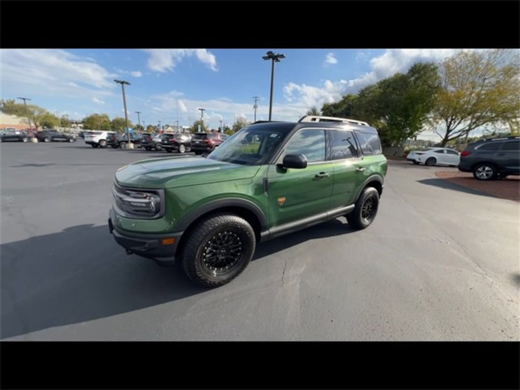 Low Miles, CarBravo Certified, 4WD, Leather Seats, Sunroof, Trailering Package, Backup Camera, Remote Start, Pwr Dr Seat, Rear Park Assist, Heated Seats, Heated Steering Wheel, Memory Seating, Apple CarPlay, Aluminum Wheels, Carfax Buyback Guarantee, Bronco Sport Badlands, 4D Sport Utility, EcoBoost 2.0L I4 GTDi DOHC Turbocharged VCT, 8-Speed Automatic, 4WD, Eruption Green Metallic, Ebony/Roast w/Leather-Trimmed 2-Tone Heated Front Bucket Seats, 4-Wheel Disc Brakes, 6 Speakers, ABS brakes, Air Conditioning, Alloy wheels, AM/FM radio: SiriusXM, Auto High-beam Headlights, Auto-Dimming Rear-View Mirror, Automatic temperature control, Body-Colored Door Handles, Brake assist, Cargo Management System, Class II Trailer Tow Package w/Trailer Sway Control, Compass, Delay-off headlights, Driver door bin, Driver vanity mirror, Dual front impact airbags, Dual front side impact airbags, Dual-Zone Electronic Automatic Temperature Control, Electronic Stability Control, Emergency communication system: SYNC 3 911 Assist, Equipment Group 400A, Four wheel independent suspension, Front anti-roll bar, Front Bucket Seats, Front Center Armrest, Front fog lights, Front License Plate Bracket, Front reading lights, Fully automatic headlights, HD Radio, Heated door mirrors, Heated Steering Wheel, Illuminated entry, Knee airbag, Leather-Trimmed 2-Tone Heated Front Bucket Seats, Low tire pressure warning, Memory Driver's Seat & Sideview Mirror, Occupant sensing airbag, Outside temperature display, Overhead airbag, Overhead console, Passenger door bin, Passenger vanity mirror, Power door mirrors, Power driver seat, Power Moonroof, Premium Package, Radio data system, Rear anti-roll bar, Rear Parking Sensors, Rear reading lights, Rear seat center armrest, Rear window defroster, Rear window wiper, Remote keyless entry, Remote Start System, Security system, SiriusXM, Speed control, Speed-sensing steering, Speed-Sensitive Wipers, Split folding rear seat, Steering wheel mounted audio controls, SYNC 3 Communications & Entertainment System, Tachometer, Telescoping steering wheel, Tilt steering wheel, Traction control, Trip computer, Universal Garage Door Opener (UGDO), Variably intermittent wipers, Wireless Charging Pad. 2024 Ford Bronco Sport Eruption Green Metallic Badlands 4D Sport Utility 4WD 8-Speed Automatic 21/26 City/Highway MPG EcoBoost 2.0L I4 GTDi DOHC Turbocharged VCT