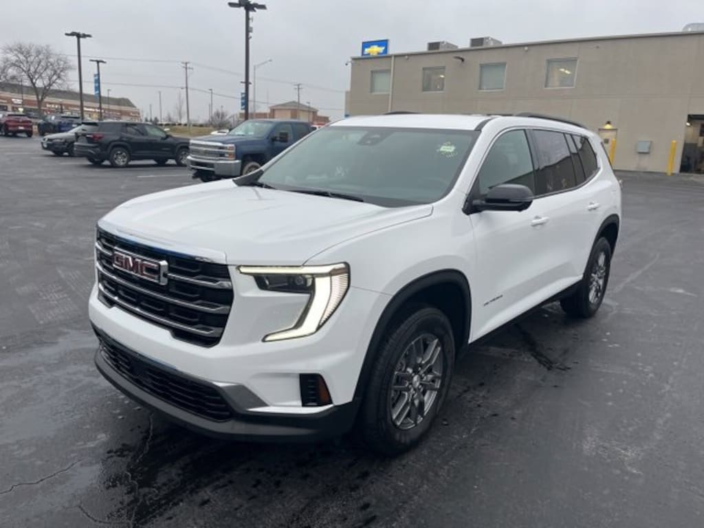 CarBravo Certified, Backup Camera, Remote Start, 8 Passenger Seating, Pwr Dr Seat, Forward Collision Alert, Navigation, Bose Audio, Side Blind Zone Alert, Rear Cross Traffic Alert, Rear Park Assist, Adaptive Cruise Control, Heated Seats, Heated Steering Wheel, Apple CarPlay, Aluminum Wheels, Carfax Buyback Guarantee, Acadia Elevation, 4D Sport Utility, 2.5L DOHC, 8-Speed Automatic, FWD, Summit White, After Dark w/Cloth Seat Trim, 18 x 7.5 Aluminum Wheels, 2-Way Driver Power Lumbar Seat Adjuster, 3rd row seats: split-bench, 4-Way Manual Front Passenger Seat Adjuster, 4-Wheel Disc Brakes, 8-Passenger Seating (2-3-3 Seating Configuration), 8-Way Power Driver Seat Adjuster, ABS brakes, Air Conditioning, AM/FM radio: SiriusXM with 360L, Apple CarPlay/Android Auto, Auto High-beam Headlights, Auto-dimming Rear-View mirror, Automatic temperature control, Bodyside moldings, Bose Premium 12-Speaker System with Sub-Woofer, Brake assist, Bumpers: body-color, Cloth Seat Trim, Compass, Driver door bin, Driver vanity mirror, Dual front impact airbags, Dual front side impact airbags, Electronic Stability Control, Emergency communication system: OnStar Services capable, Exterior Parking Camera Rear, Four wheel independent suspension, Front anti-roll bar, Front Bucket Seats, Front Center Armrest, Front dual zone A/C, Front fog lights, Front reading lights, Fully automatic headlights, Heated door mirrors, Heated Driver and Front Passenger Seats, Heated steering wheel, Illuminated entry, Leather steering wheel, Low tire pressure warning, Navigation System, Occupant sensing airbag, Overhead airbag, Overhead console, Passenger door bin, Passenger vanity mirror, Power door mirrors, Power Liftgate, Preferred Equipment Group 4SC, Radio data system, Radio: 15 Diagonal Premium GMC Infotainment System, Rear air conditioning, Rear anti-roll bar, Rear reading lights, Rear seat center armrest, Rear side impact airbag, Rear window defroster, Rear window wiper, Remote keyless entry, Security system, SiriusXM with 360L, Speed control, Speed-sensing steering, Spoiler, Sport steering wheel, Steering wheel mounted audio controls, Tachometer, Telescoping steering wheel, Tilt steering wheel, Traction control, Trip computer, Turn signal indicator mirrors, Variably intermittent wipers, Voltmeter. 2025 GMC Acadia Summit White Elevation 4D Sport Utility FWD 8-Speed Automatic 20/27 City/Highway MPG 2.5L DOHC