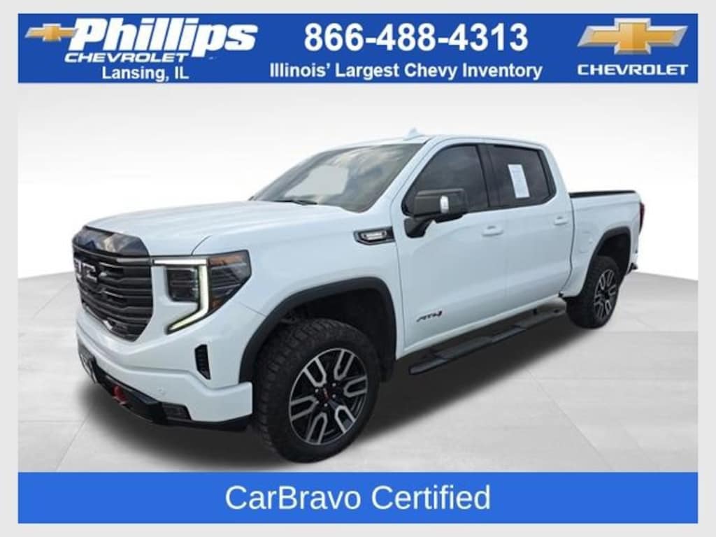 CarBravo Certified, 4WD!, Carfax Buyback Guarantee, Sierra 1500 AT4, 4D Crew Cab, 3.0L I6, 10-Speed Automatic, 4WD, Summit White, Jet Black w/Kalahari Accents w/Perforated Front Leather Seat Trim, 10-Way Power Driver Seat Adjuster w/Lumbar, 10-Way Power Passenger Seat Adjuster w/Lumbar, 120-Volt Interior Power Outlet, 2 Charge/Data USB Ports Inside Center Console, 2 Type-C Charge-Only Rear USB Ports, 2 USB Ports, 220 Amp Alternator, 4-Wheel Disc Brakes, ABS brakes, AM/FM radio: SiriusXM with 360L, Apple CarPlay/Android Auto, Auto High-beam Headlights, Auto-dimming Rear-View mirror, Auto-Locking Rear Differential, Automatic Emergency Braking, Automatic temperature control, Black Chrome Grille Insert Bars, Brake assist, Buckle to Drive, Color-Keyed Carpeting Floor Covering, Compass, Deep-Tinted Glass, Driver Memory, Electric Rear-Window Defogger, Electronic Stability Control, Engine Block Heater, Floor-Mounted Center Console, Following Distance Indicator, Forward Collision Alert, Front Bucket Seats, Front dual zone A/C, Front fog lights, Front Pedestrian Braking, Front Prem Floor Liners w/Removable Carpet Insert, Front Rain-Sensing Wipers, Fully automatic headlights, HD Surround Vision, Heated 2nd Row Outboard Seats, Heated Driver & Front Outboard Passenger Seating, Heated steering wheel, Heavy-Duty Air Filter, Hill Descent Control, Hitch View, Illuminated entry, In-Vehicle Trailering System App, Integrated Trailer Brake Controller, Keyless Open & Start, Lane Keep Assist w/Lane Departure Warning, LED Cargo Area Lighting, Memory seat, Navigation System, Off-Road Suspension, OnStar Services Capable, Outside temperature display, Overhead console, Passenger door bin, Perforated Front Leather Seat Trim, Perimeter Lighting, Power Door Locks, Power Front Passenger Windows w/Express Up/Down, Power Front Windows w/Driver Express Up/Down, Power Rake & Telescoping Steering Column, Power Rear Windows w/Express Down, Preferred Equipment Group 4SB, Premium Bose 7-Speaker Sound System, Push Button Start, Radio: Premium GMC Infotainment Audio System, Rain sensing wipers, Rear Cross Traffic Braking, Rear Pedestrian Detection, Rear Wheelhouse Liners, Red Recovery Hooks, Remote Vehicle Starter System, Safety Alert Seat, SiriusXM w/360L Trial Subscription, Speed-sensing steering, Spray-On Pickup Bedliner w/GMC Logo, Steering Wheel Audio Controls, Steering wheel mounted audio controls, Tachometer, Telescoping steering wheel, Theft Deterrent System (Unauthorized Entry), Tilt steering wheel, Traction control, Trailer Camera Provisions, Trailer Side Blind Zone Alert, Trailering Package, Ultrasonic Front & Rear Park Assist, Variably intermittent wipers, Ventilated Driver & Front Passenger Seats, Voltmeter, Wheels: 20 x 9 Machined Aluminum, Wi-Fi Hotspot Capable, Wireless Apple CarPlay/Wireless Android Auto, Wireless Charging. 2025 GMC Sierra 1500 Summit White AT4 4D Crew Cab 4WD 10-Speed Automatic 21/24 City/Highway MPG 3.0L I6