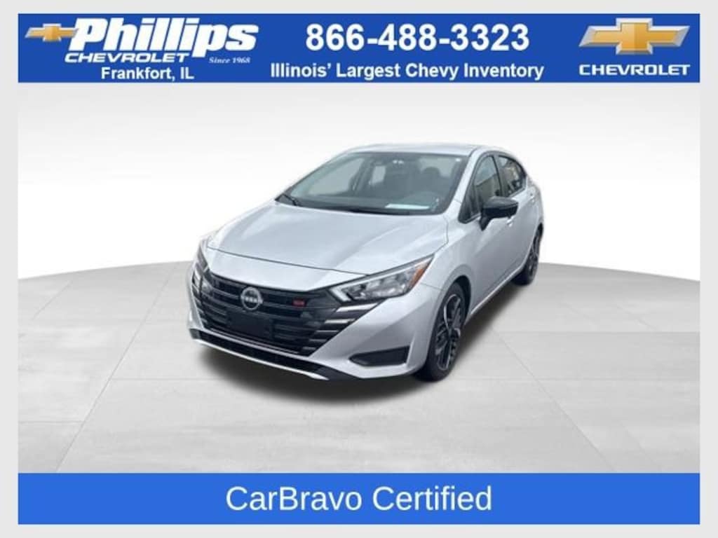 CarBravo Certified, Backup Camera, Remote Start, Pwr Dr Seat, Side Blind Zone Alert, Heated Seats, Apple CarPlay, Aluminum Wheels, Carfax Buyback Guarantee, Versa 1.6 SR, 4D Sedan, 1.6L I4 DOHC 16V, CVT, FWD, Brilliant Silver Metallic, Sport w/SR Fabric Seat Trim, 17 Aluminum Alloy Wheels, 6 Speakers, ABS brakes, Air Conditioning, Apple CarPlay/Android Auto, Auto High-beam Headlights, Automatic temperature control, Blind Spot Warning, Brake assist, Bumpers: body-color, Driver door bin, Driver vanity mirror, Dual front impact airbags, Electronic Stability Control, Fully automatic headlights, Heated door mirrors, Heated Front Bucket Seats, Illuminated entry, Leather steering wheel, Outside temperature display, Panic alarm, Passenger door bin, Passenger vanity mirror, Power door mirrors, Radio data system, Radio: AM/FM Audio System, Rear Parking Sensors, Rear window defroster, Remote keyless entry, Speed control, Split folding rear seat, Spoiler, SR Fabric Seat Trim, Steering wheel mounted audio controls, Tachometer, Telescoping steering wheel, Tilt steering wheel, Traction control, Trip computer, Turn signal indicator mirrors, Variably intermittent wipers. 2024 Nissan Versa Brilliant Silver Metallic 1.6 SR 4D Sedan FWD CVT 32/40 City/Highway MPG 1.6L I4 DOHC 16V